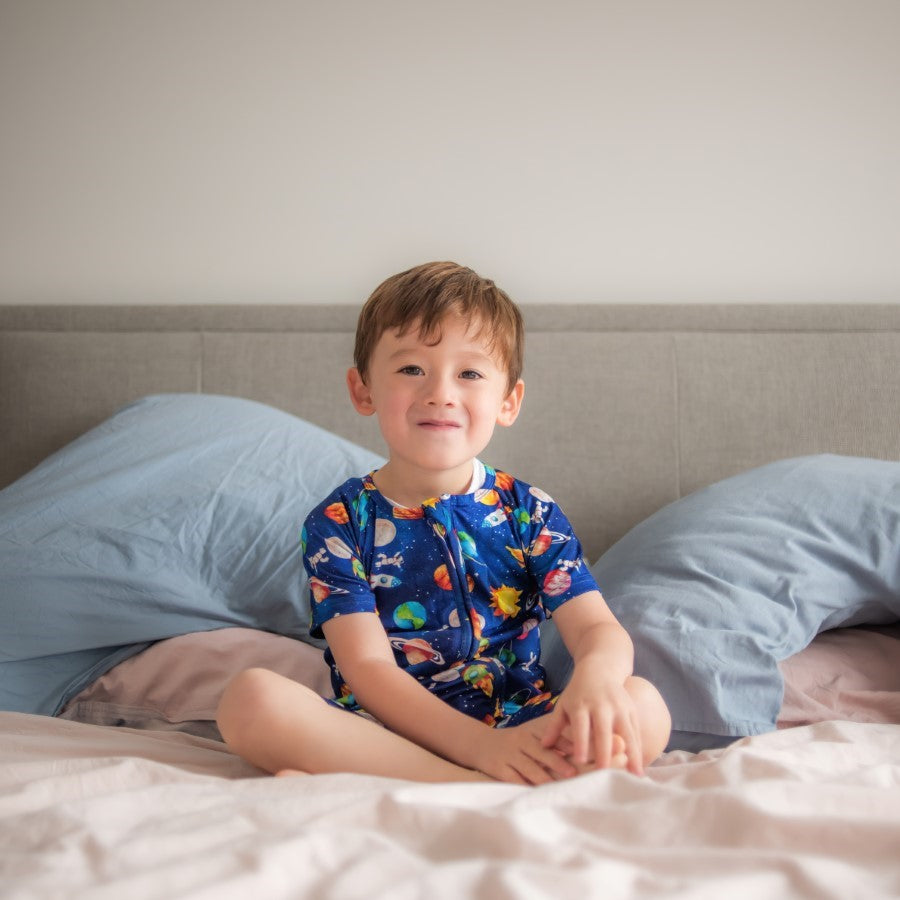 Short-sleeve Bamboo Zip Rompers (Bootysuit) - Blast Off