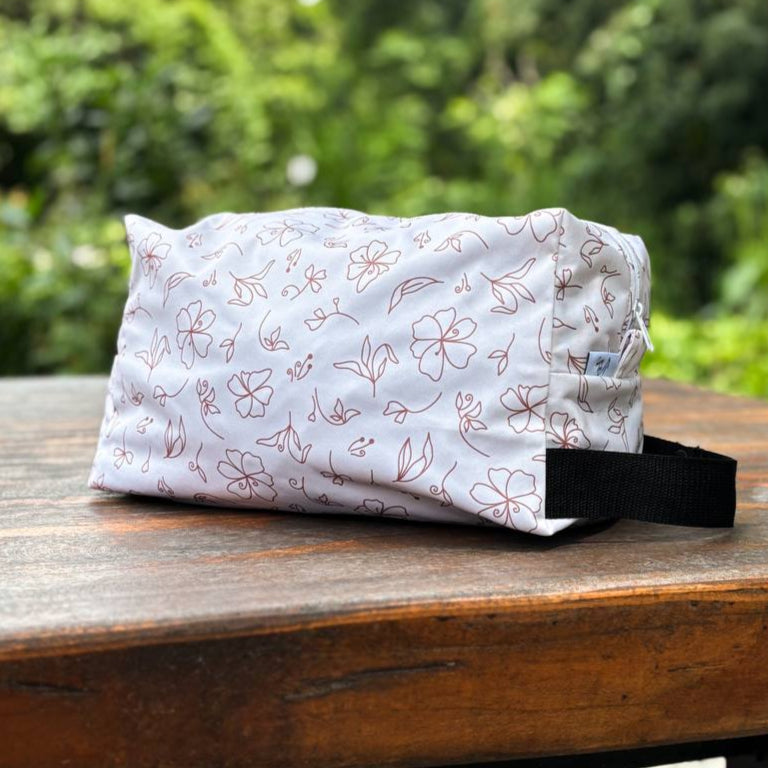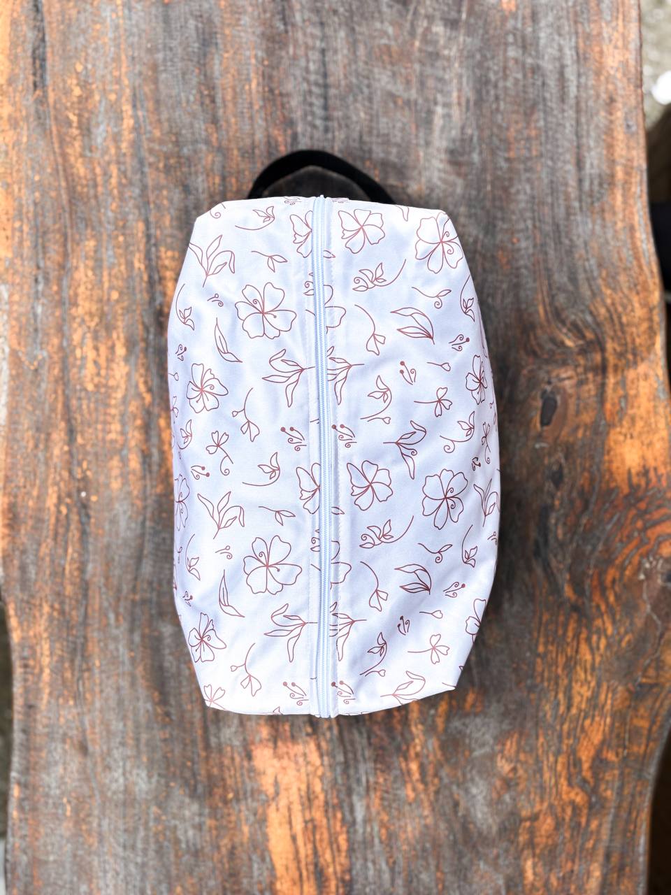 Let this minimalist floral travel bag bring a sense of calm to your daily routine. Thoughtfully designed with two layers of water-resistant recycled plastic and a sturdy snap-on handle, this pod keeps wet swimsuits, baby essentials, or travel items tidy and odour-free. Perfect for parents who crave effortless organisation and a touch of elegance on the go.