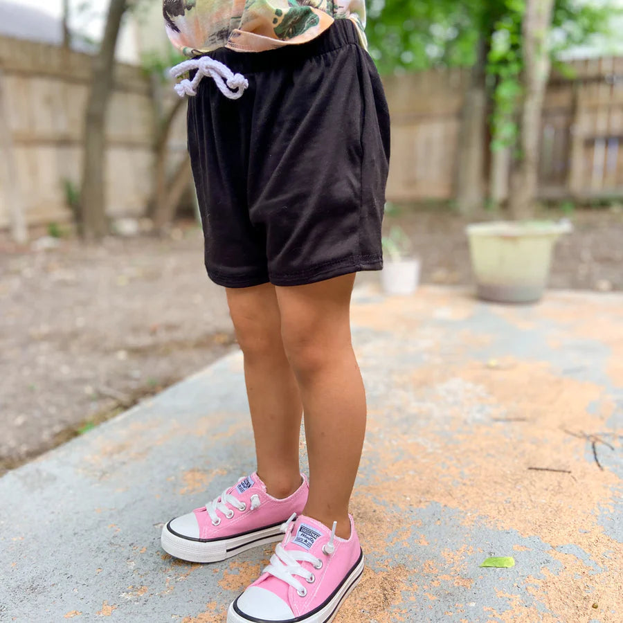 The Jogger Shorts feature a decorative drawstring and pockets for kids to keep small items or stick their cute little hands in. They are perfect for times when the kids prefer shorts to leggings or long pants. They are casual enough to be used to outdoor play and sports but can also be worn to family dinners and indoor events.