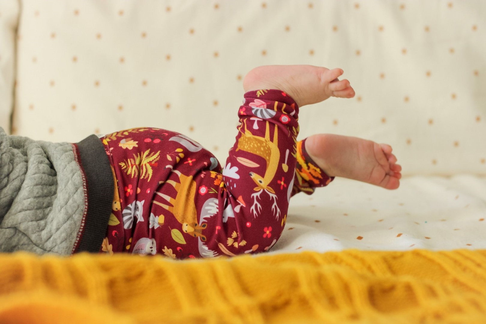 Cute designs, light weight and soft. It can stretch so its really comfortable and you can use it till the kids are bigger. Easily the leggings I always reach for.