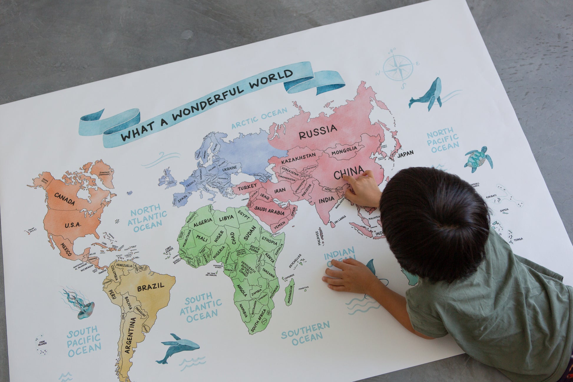 We were blown away when we unrolled this beautiful map for the first time. Love the fact that my kids can easily find Singapore on this world map! We have had so much fun using the map to learn about different countries and places in the world. No regrets buying a larger size! The canvas material is very durable too.