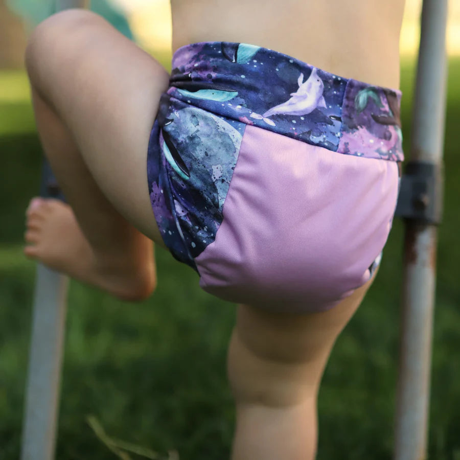 Smart Bottom's nighttime trainers is for children who are nearly dry at night but may still have the occasional accident. As the material is very thin and comfortable, they can also be used as daytime trainers to catch an accident or two. The waist and legs are super stretchy so your child will be able to pull the trainer up & down on their own, giving them confidence and independence in this new stage of their life. We love the versatility of these trainers, and it's an added bonus that they are so pretty to look at!